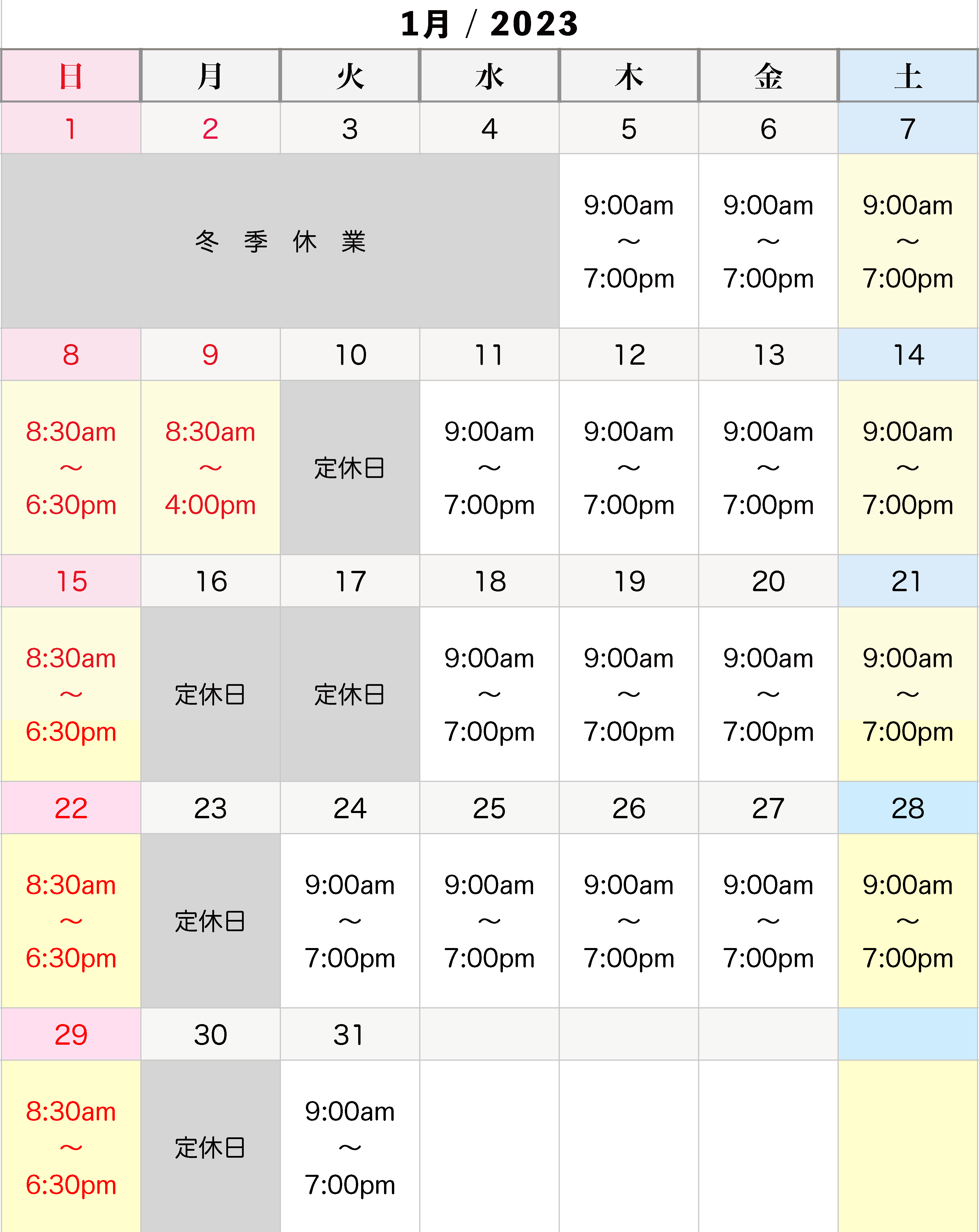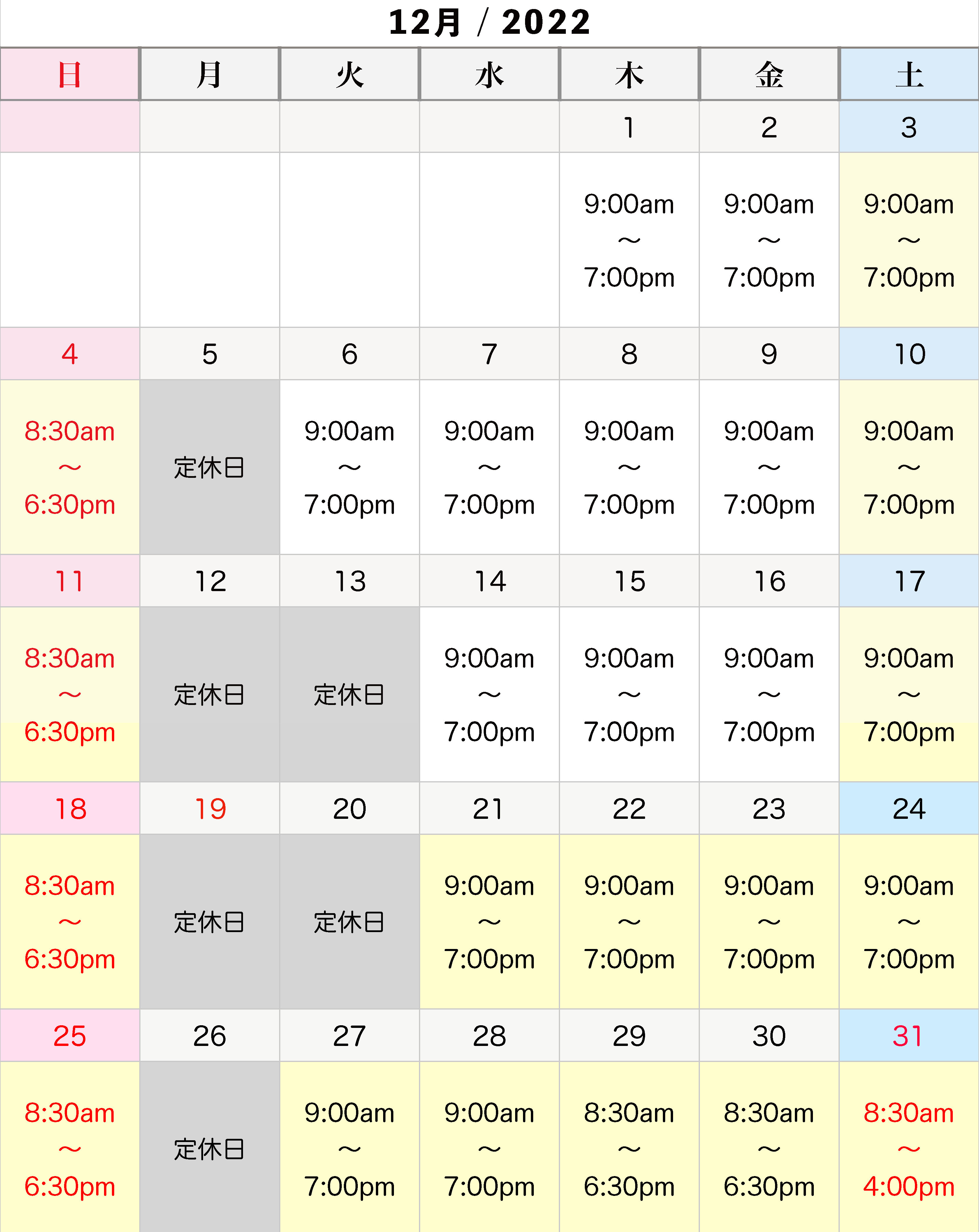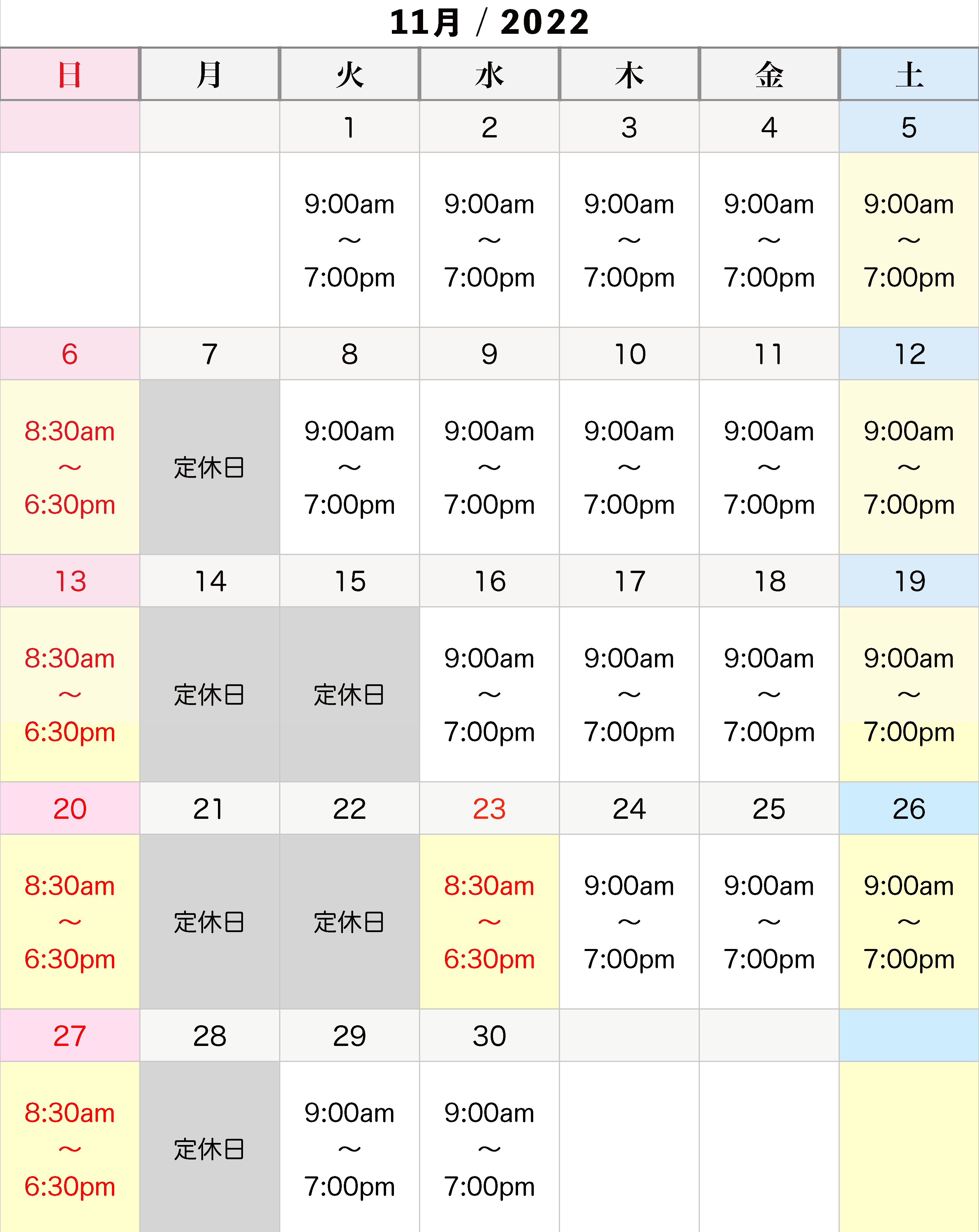 - 2022.10.27 営業カレンダーを更新いたしました (←クリック)