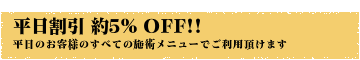 平日にご来店のお客様は全ての施術メニューが通常料金より約5%OFF!!