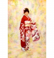 パステル色の布地の背景になります。微妙な立体感と光沢があり、濃い色のお衣装との相性が良いです。被写体は女性に向きます。